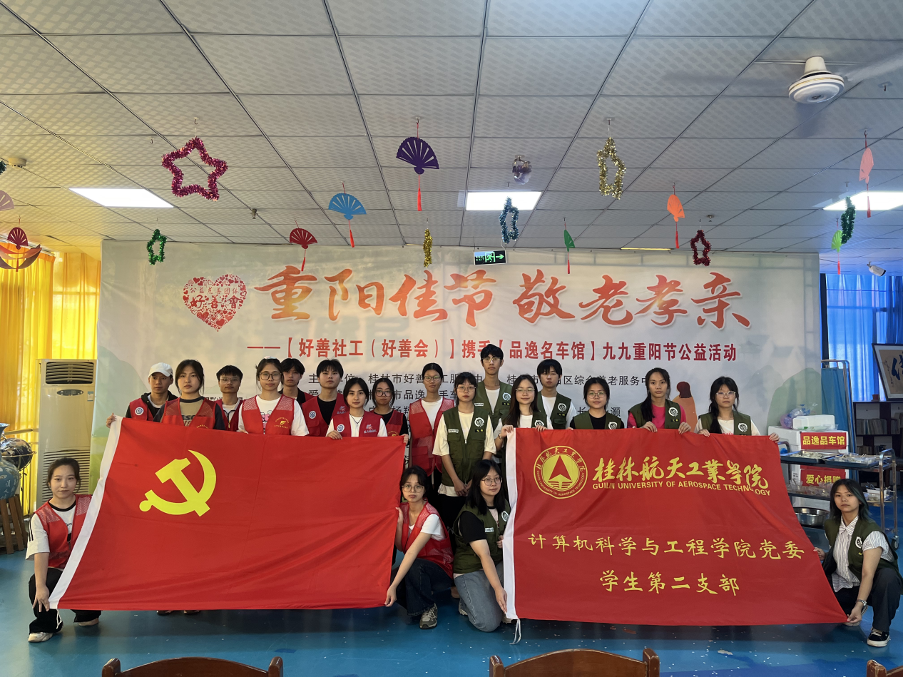 近日,计算机科学与工程学院团委联合学院各学生党支部、桂航星火燎原宣讲团及桂林好善社工,一同走进桂林市陶然居医护养老院,举办了一场以“重阳佳节,敬老孝亲”为主题的活动。此次活动不仅弘扬了尊老敬老的传...