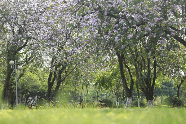 近日,我校北校区紫荆大道上繁花盛开,成为校园中一道亮丽的风景线,吸引了众多师生和市民驻足观赏留影。