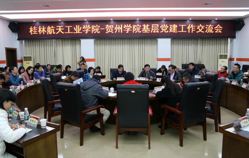 为进一步加强学校基层党建工作,有效提高我校党务工作者的综合素质和业务能力,推动党建工作再上新台阶,11月23日,学校党委副书记、纪委书记黄文韬带领各党支部书记、支委委员、组织部门工作人员一行42人赴贺州学院调研学习党建工作。贺州学院党委副书记、纪委书记梁华热情接待,并在行政楼102会议室进行座谈。贺州学院党政办、组织部(统战部)、文化与传媒学院、设计学院等负责人参与座谈。