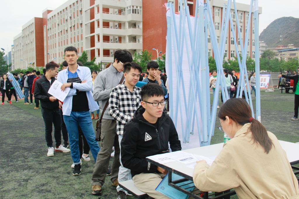 学校工作小组通过上门走访、电话邀请、信函邮寄等多种方式广泛邀请用人单位参会,招聘会还得到了桂林市人才市场和桂林市桂聘网的大力支持。此次招聘会各用人单位报名踊跃,其中桂林市以外的用人单位占到近30%,共提供就业岗位7000多个,毕业生供需比达1:2。