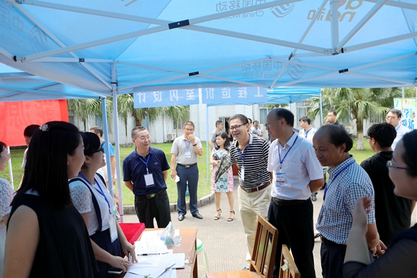 在北校区,校领导来到迎新接待点,与新生及家长亲切交流,看望并慰问了工作人员,详细了解了迎新工作的开展情况,对各院系工作人员不辞辛劳地参加迎新工作表达了敬佩。