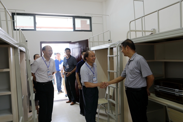 在天和苑7号学生公寓,李幼平和易忠仔细询问了新生对桂林的气候和学校环境的适应情况,介绍了校园内的生活设施,李幼平勉励新生好好把握即将开始的大学时光,争取学有所成。