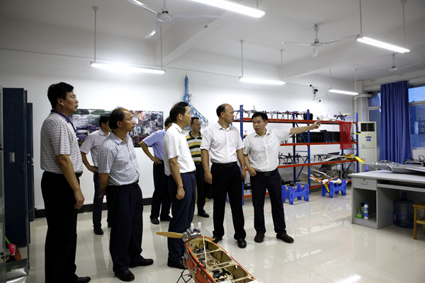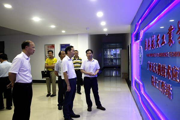 随后,莫诗浦一行走访了我校教学实验场所。在我校机械工程实训中心,他详细询问了我校应用型人才培养情况;在机械工程学院微/小飞行器开放性实验室,当听到我校师生在中国国际飞行器设计挑战赛暨科研类全国航空航天模型公开赛中获得4项冠军的佳绩时,他高兴的鼓励师生再接再厉勇攀高峰;在广西无人机技术应用院士工作站,他饶有兴致地观看了我校师生自主研发的新型垂直起降无人机飞行展示,听取了院士工作站建设情况汇报;在教育部、中兴通讯与我校共建的ICT产教融合创新基地,莫诗浦一行亲身体验了“大数据”智慧为旅游出行带来的便利。
