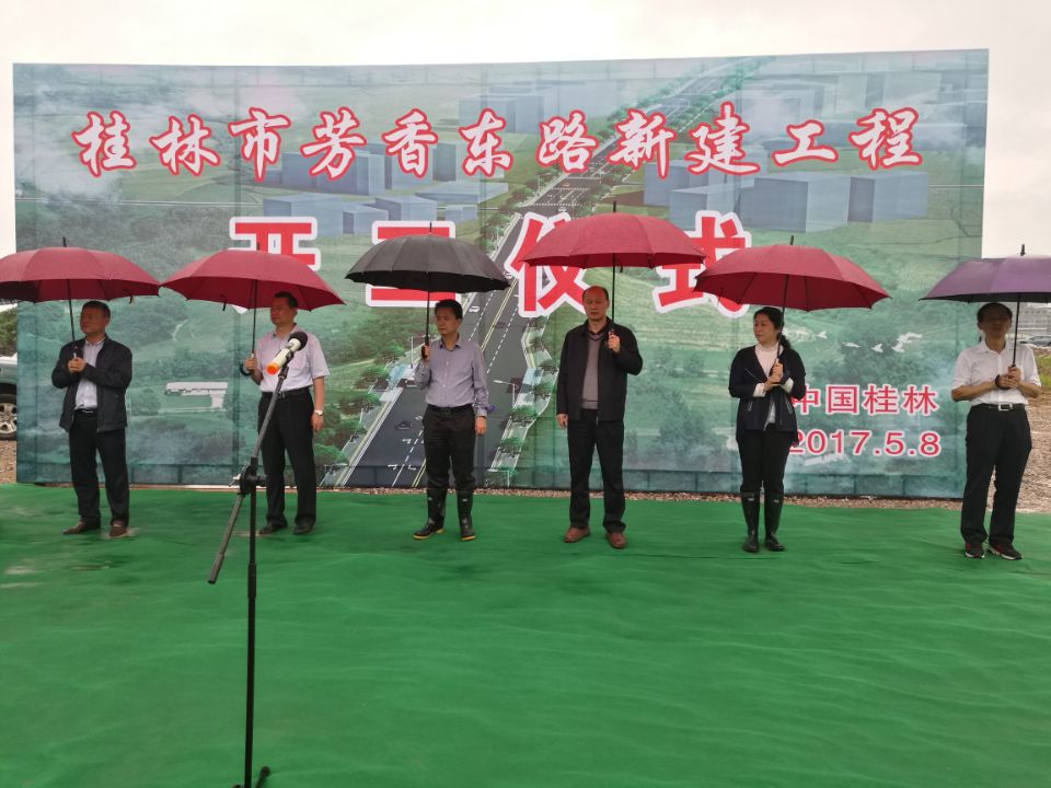 5月8日上午,桂林市芳香东路开工仪式在竹桥村举行。桂林市委常委、常务副市长张晓武,市政协副主席汤桂荔,我校党委书记李幼平,副校长罗国湘及沿路单位领导等出席开工仪式。