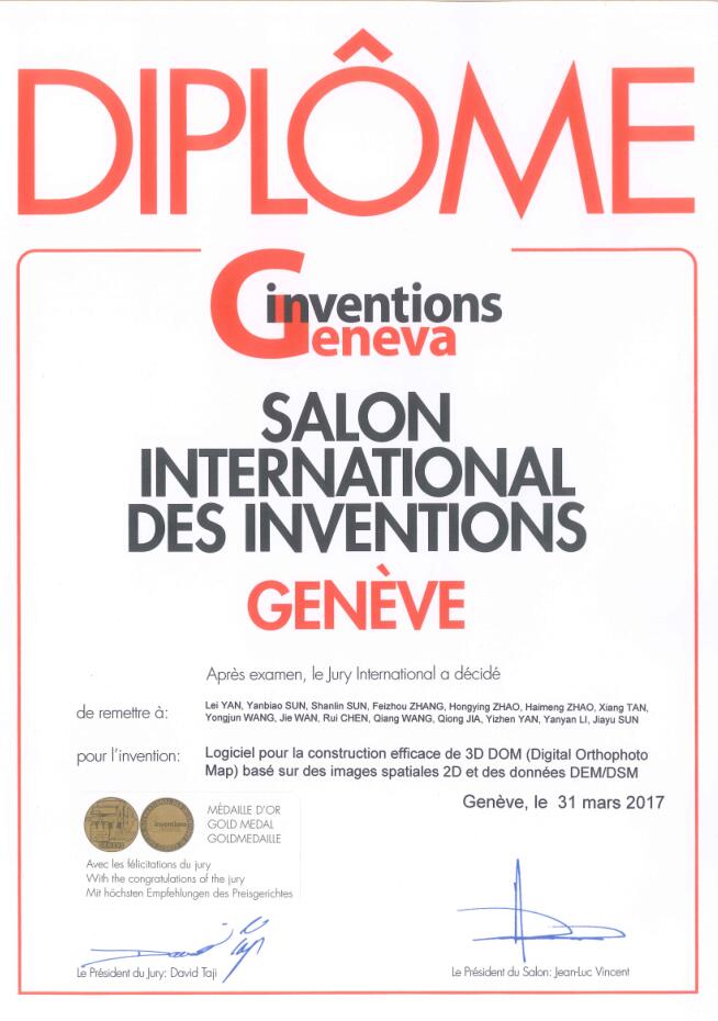 近日,在瑞士日内瓦第45届日内瓦国际发明展览会上,我校与北京大学协同参展的“航空极坐标摄影测量方法在无人机遥感观测中的应用”项目,荣获本届展览会国际发明特别嘉许金奖。