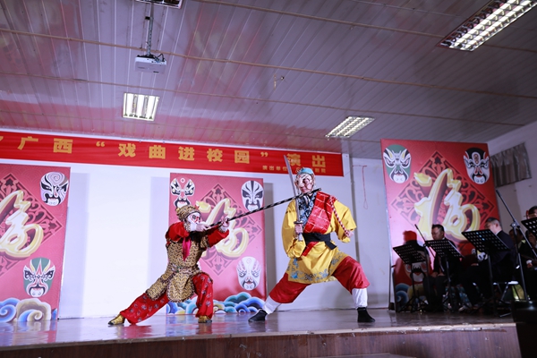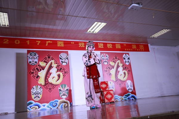 为弘扬我国优秀传统文化,提高我校师生的“艺术魅力”, 3月15日上午,广西戏剧院京剧团在我校开展京剧进校园演出活动。