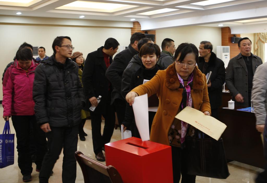 与会人员在认真听取报告后,采取无记名方式填写测评表,对学校领导班子和领导干部2016度工作进行了民主测评,对干部选拔任用工作和新选拔任用干部进行了民主评议。
