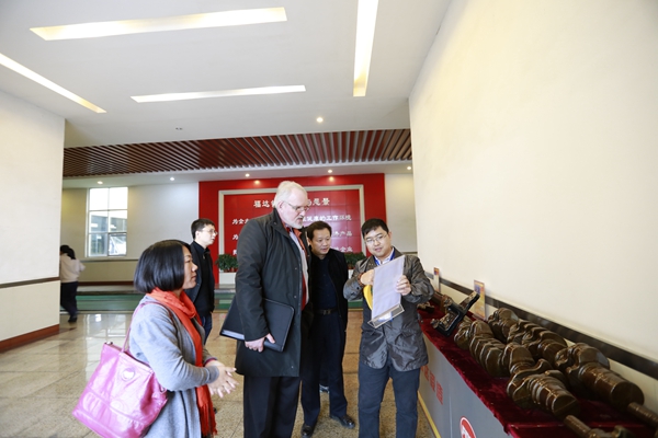 下午,考察组一行来到桂林福达有限公司和桂林优利特医疗电子有限公司,实地考察我校校企合作情况。当Bernhard Streicher先生一行了解到我校积极与企业开展科研攻关项目,毕业生成长为企业骨干力量,他对我校校企合作工作表示充分肯定。
