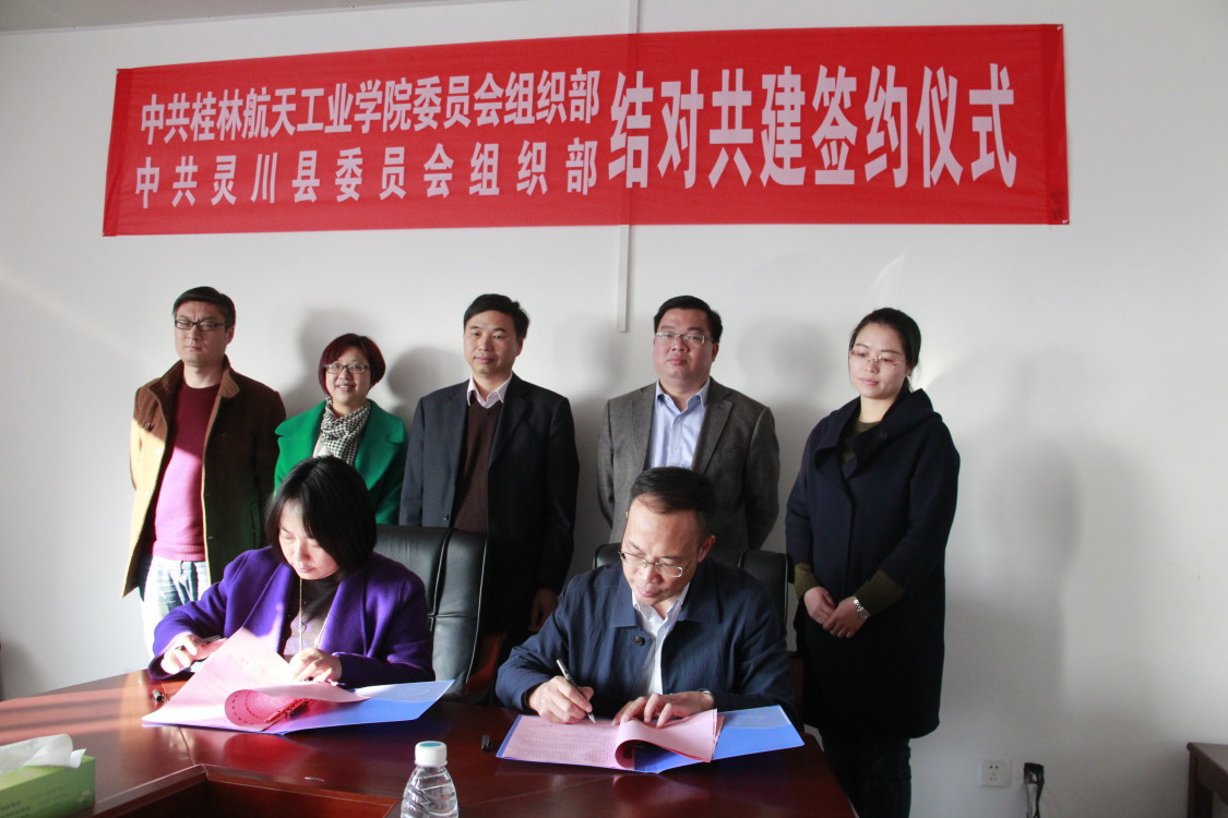 我校党委组织部主要负责人与灵川县委组织部有关负责人签订了结对共建协议。