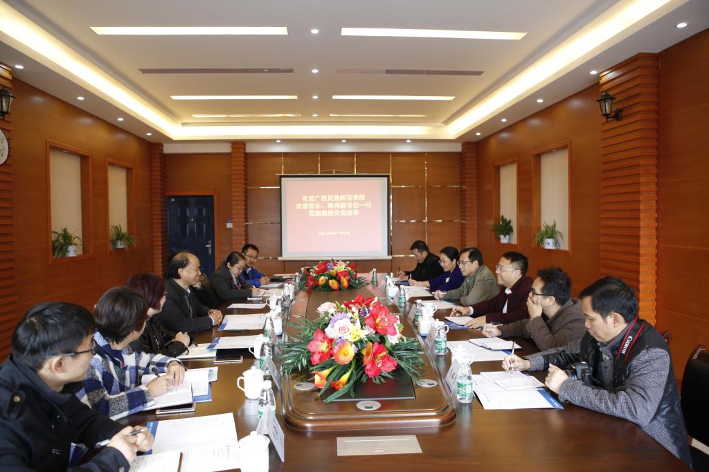 11月10日,广西民族师范学院校长武波、校党委副书记周鸿带队来校交流考察。我校校长易忠,副校长杨杰热情接待了来访客人。