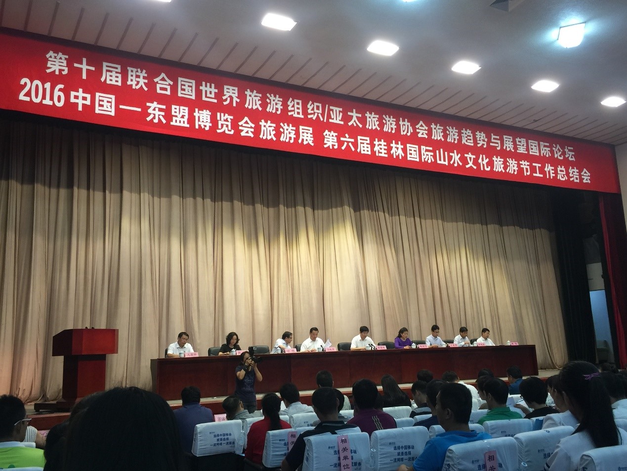 10月28日下午,第十届联合国世界旅游组织/亚太旅游协会旅游趋势与展望国际论坛、2016中国—东盟博览会旅游展、第六届桂林国际山水文化旅游节(简称“两会一节”)工作总结会在市直机关小礼堂召开。市长周家斌、副市长陈丽华等出席会议并讲话,我校外语外贸系2015级商务英语专业学生志愿者和指导教师应邀参加了表彰大会。