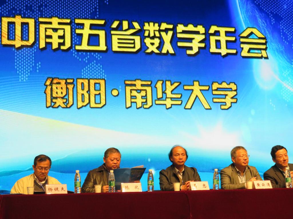 为进一步推动湖南、湖北、广东、广西和海南五省(区)数学学科的提升与发展,加强五省(区)数学界在数学学术上的交流与合作,10月28日—30日,第五届五省(区)数学年会在湖南衡阳市召开。来自五省(区)的科研院校共400多位代表参加了这次会议。我校校长易忠教授应邀出席了本次会议。