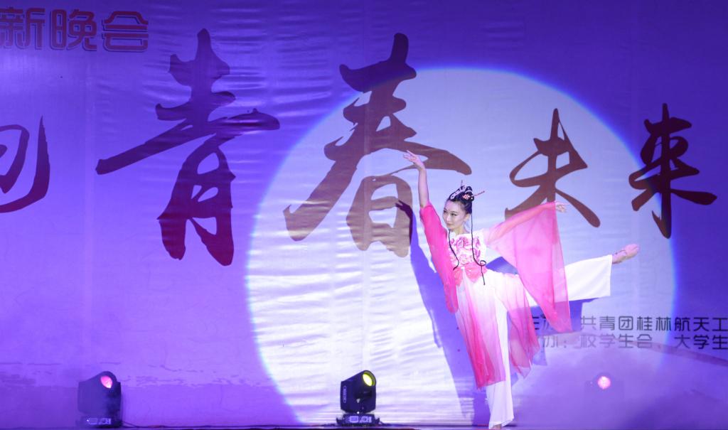 伴随着欢腾的舞龙表演,晚会拉开帷幕。随后,学长学姐们为新生精心准备的各类节目轮番上演,激起现场阵阵喝彩。《最炫民族风》将民族元素与流行元素紧密结合,表现出来自五湖四海不同民族的青年学子相聚桂航。航天礼仪表演《圆梦蓝天》向同学们展示了航天特色文化,赢得了观众的阵阵掌声;大学生艺术团深情演绎的《大山支教》感染了台下的每一个人,传递出师生间的深情厚谊;动感十足的街舞表演《青春那些事》,将桂航学子的青春活力展现的淋漓尽致;而我校青年教师带来的舞蹈《红豆》,以其美轮美奂的舞台背景和柔美的舞姿,让全场为之倾倒。武术协会上演的《桂航武魂》更是将晚会气氛推向高潮;晚会最后,一曲《我的未来不是梦》抒发了桂航青年学子对美好未来的憧憬与期望,晚会也随着动人的旋律圆满落幕。