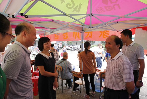 暑气仍盛秋意浓,笑脸盈盈喜相逢。9月8日是我校2016级新生报到第一天,校长易忠、副校长杨杰带领校办、宣传部、学生工作处、教务处、财务处、保卫处、后勤管理处等部门领导检查了南北校区迎接新生工作情况。