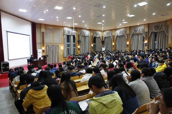 11月12日晚,教育部高等学校教学指导委员会委员、山东大学艺术学院院长李晓峰教授莅临我校桂航大讲坛,为同学带来了一场题为《清音悠远——中国传统音乐回眸》的高雅艺术报告,全校400余名师生聆听了报告,报告会由团委书记杨永昌主持。