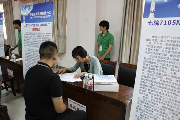 此次招聘会是在我国航天、航空事业发展进入快车道发展的大环境下,也是体现学校航天航空鲜明特色所举行的一次活动。中国航天科工集团〇六八基地、中航贵州飞机有限责任公司、中国航天科技集团公司六院7103厂、中航工业贵州红林机械有限公司、中国航天科工集团公司7801研究所、遵义精星航天电器有限责任公司等来自湖南、贵州、四川、广西、广东、陕西6省份的15家航天航空单位参加了此次招聘会。