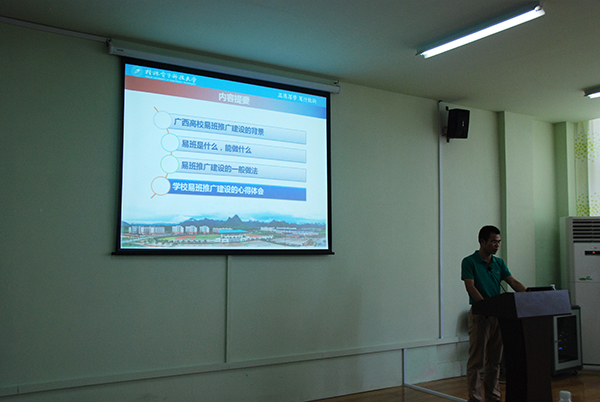 本次培训邀请了我校副校长詹皖生、桂林电子科技大学学工处副处长曾宪立等校内外学生工作专家担任主讲教师。结合当今学生工作中的热点、难点开展了多个专题的培训,从《辅导员工作课程模式与学生工作》、《学生管理系统操作培训》、《坚定理想信念,积极培育与践行社会主义核心价值观》、《辅导员工作重点、要点分析》、《网络思政与易班建设》等多方面全方位探讨了辅导员工作课程化建设、工作实务经验与技巧、易班建设等,倾力打造了辅导员老师的“正能量充电站”。