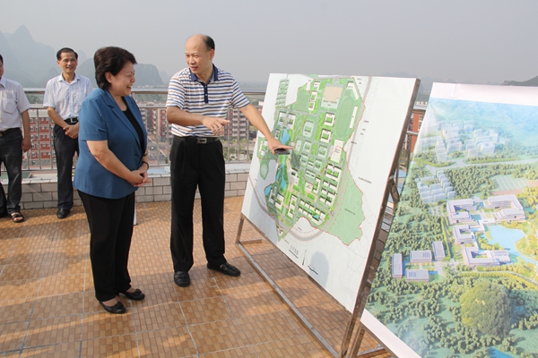 7月14日上午,自治区人民政府副主席李康莅临我校指导工作,自治区人民政府副秘书长吴建新,自治区教育厅厅长秦斌、副厅长蔡昌卓,桂林市副市长巫家世,我校全体在校领导陪同考察。