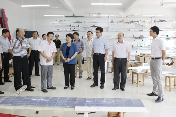 在小微飞行器开放性实验室,李康观摩了由我校师生设计制作的太阳能环保小飞机,听说我校学生多次在全国的飞行器设计比赛中获奖,她表示赞赏,希望师生们再接再厉,设计制作出更多富有航天特色的创新成果。