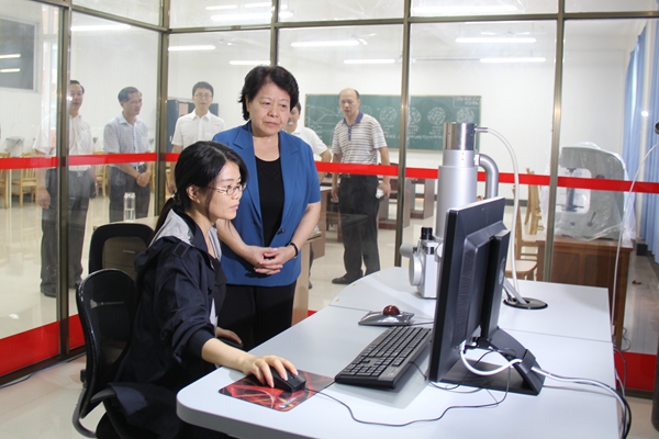 在航天材料实验室,机械工程系张文凤博士为李康演示了高精度扫描电镜对金属材料的检测,详细介绍了扫描电镜的工作原理、实际应用等情况。
