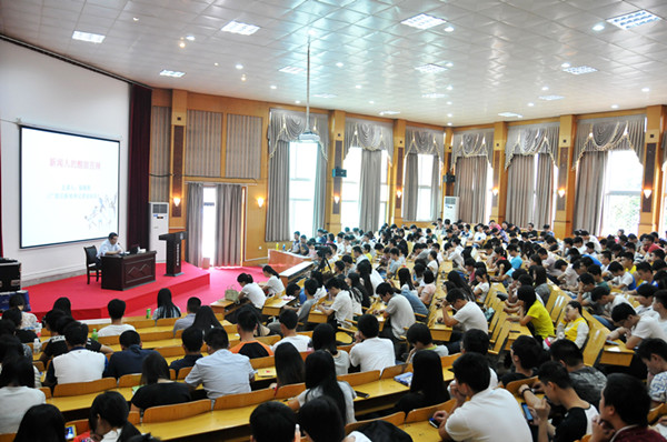 5月21日,《广西日报》桂林记者站站长、高级记者骆展胜应邀莅临我校桂林大讲坛,为我校近400名学生作了一场题为《新闻人的酸甜苦辣》的专题讲座。