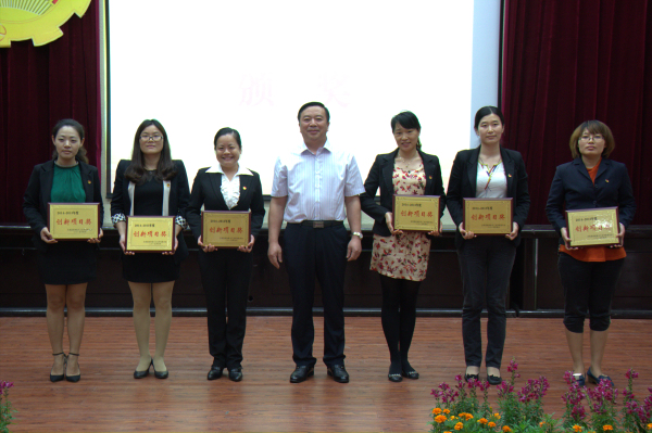 表彰大会在青春激昂的国歌声中拉开序幕。全体师生一齐唱响国歌后,共同观看了我校2014-2015年度年共青团工作回顾视频。紧接着,由院团委书记杨永昌宣读了《关于表彰2014年度共青团工作先进集体和先进个人的决定》,对全校57个先进集体和700余名先进个人进行了表彰。易忠等出席大会的领导分别为获奖代表颁奖,并合影留念。