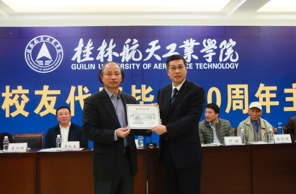 为表达对母校的感恩,校友们集体为母校校史馆捐赠了“航天员训练服”、“歼20隐形战斗机模型”,学校领导、老师为校友们佩戴校徽、颁发校友捐赠证书。同时,鉴于86级校友的发展成就及对母校的深厚情谊,学校特聘请862班卢崇元、865班许世安等8位校友分别担任管理学院、计算机科学与工程学院8个班级的“校友导师”,负责协助母校引领学生成长成才。易忠为他们颁发了聘书。