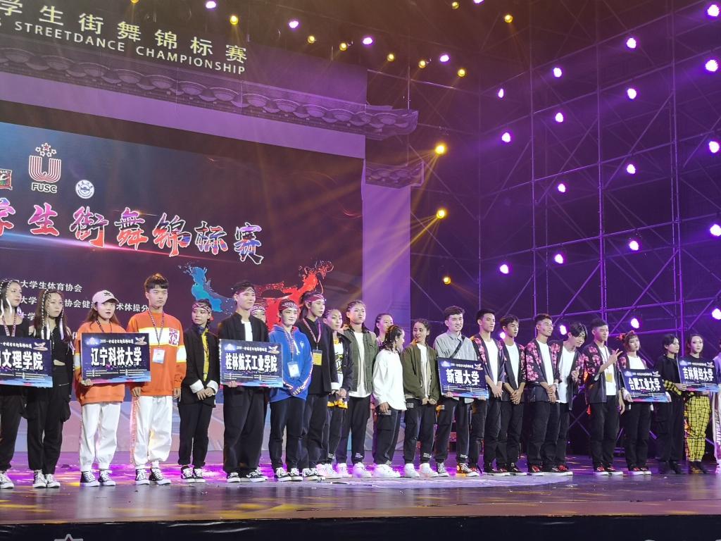 11月8至13日,由中国大学生体育协会主办,中国大学生体育协会健美操艺术体操分会执行的2018中国学生街舞锦标赛在安徽大学顺利举行。本次街舞锦标赛不分专业组与非专业组,由我校体育部梁莉老师带队,文璇、周艳玲老师指导的校啦啦操街舞队从来自全国19个省市的48所院校,同组21支队伍中脱颖而出,经过五天的激烈比拼后我校获得“原创齐舞”(普通高校组)第5名、“优秀组织奖”等团体奖项,向全国各高校展示了我校学子的青春活力和团结拼搏的精神。