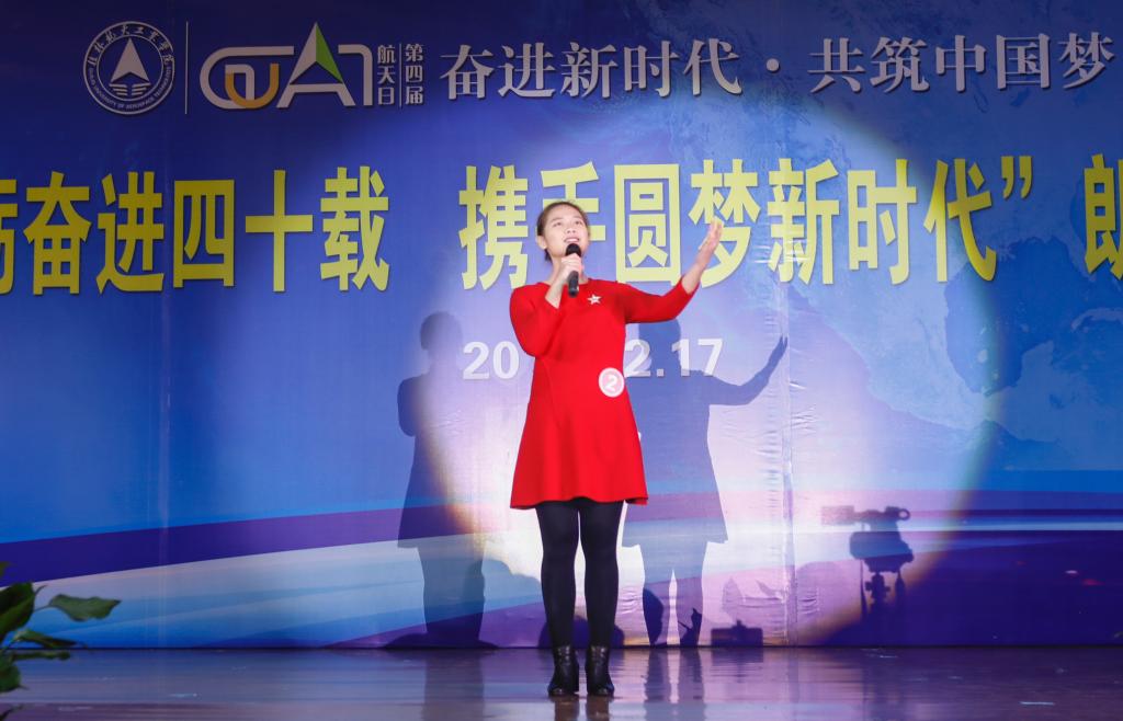 赛场上,参赛选手们进行声情并茂的精彩朗诵比拼,肖大伟选手的朗诵《成长.四十年》从经历改革开放四十周年视角,感受着改革开放带来的时代变化,因为改革开放祖国开始繁荣富强蒸,而如今一代人的老去,是站在新的历史节点上展望祖国将来更美好的明天;廉紫阳同学朗诵的《我的爸爸》则站在了一位航天父亲的女儿的角度上,读出了对自己的航天父亲的崇敬之情。