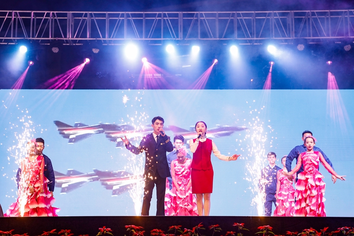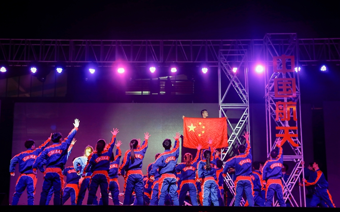 晚会以空乘专业技能比赛为主线,学子们透过礼仪展示、安全演示、情景模拟等环节的专业技能比拼,展现了我校空中乘务、国际乘务、播音与主持艺术专业的培养水平。校职工舞蹈队带来的《天边》,深沉悠远流畅大气;播音与主持艺术专业学生的朗诵《追梦星空》,声情并茂的演绎了我校86级校友张卫东等老一代航天人的奋斗历程;《你飞过的天空真美》致敬人民空军;原创舞蹈节目《奔越》以铿锵有力的舞步和震撼的舞台效果,精彩的演绎了航天人特别能吃苦,特别能奋斗的感人故事。每个节目都传递着满满的正能量,希望我校青年学子在航天精神精神的鼓舞下,为实现中国梦、航天梦、桂航梦贡献自己的力量。