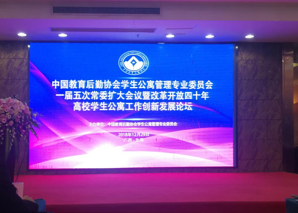 12月28-30日,中国教育后勤协会学生公寓管理专业委员会在北海市召开一届五次常委扩大会议暨改革开放四十年高校学生公寓工作创新发展论坛会议。来自清华大学、中国人民大学、南昌航空大学、福州大学等全国高校500余人参加了此次会议。我校有幸受邀成为在全国公寓工作会上作经验交流发言的六所高校之一。