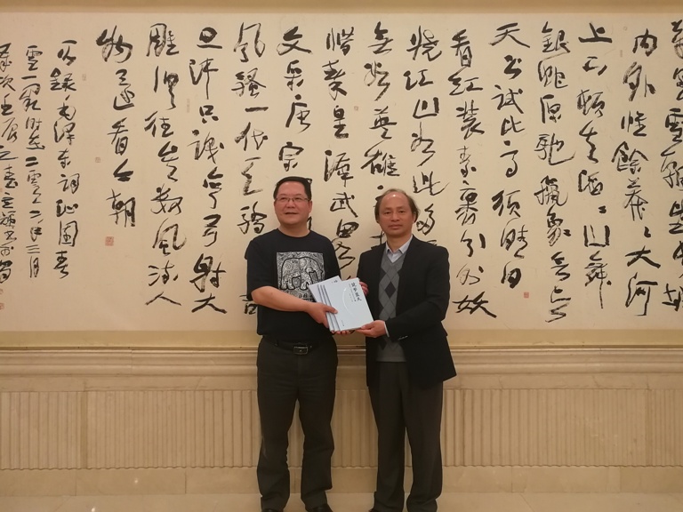 易忠向四川校友联络工作站站长何建兰赠送校友访谈录《筑梦蓝天》