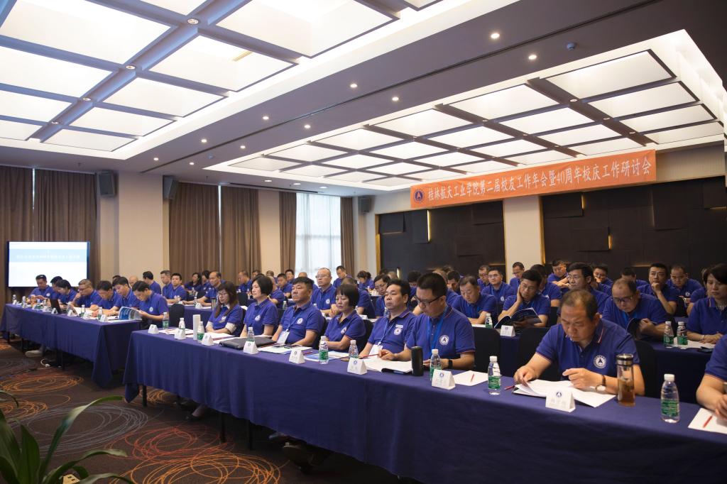 会议期间,与会校友召开了母校40周年校庆主题研讨会,重点围绕如何助力母校教育发展基金会的建设与发展,如何向母校40华诞贡献智慧与力量,如何着眼长远又立足当前为母校办大事和实事展开了深度研讨。从首届到新时代的各位校友代表纷纷建言献策,最终达成“倡导万名校友通过广西华体会平台教育发展基金会这个平台和通道共建航天图书馆、并建议在新建成的图书馆或校园内建设捐赠者纪念牌”的共识。