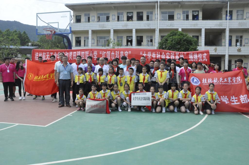 5月31日下午,由我校创建的第6所“航天科普活动室”在桂林市灵川县四联小学正式落成开放。桂林市统战部杨海芬副部长,灵川县统战部刘兵部长,灵川县教育局王开泉局长等领导亲临揭牌仪式现场,我校易忠校长与四联小学廖广禄校长共同为“大学生社会实践基地”和“航天科普活动室”揭牌,学工部、校团委、图书馆相关负责人出席了活动。