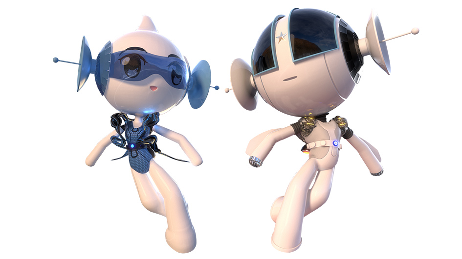 小航(男)和蓝蓝(女)是一组吉祥物,造型灵感来自于学校钱学森广场航天器模型和桂林山水。小航(男)的肩膀加上灰色盔甲,代表桂林的山,寓意有担当。蓝蓝(女)披上了一条蓝色水纹飘带,代表桂林的水,寓意有灵性。色彩上,小航和蓝蓝主色调采用宇航服常用的乳白色,柔和而时尚,为吉祥物增添了科技感和活力,突显出科技、智能的特色,辨识度高。小航和蓝蓝身着宇航服,接收来自宇宙的信息,翱翔在太空,洋溢着青春热情,展示出创新发展的勃勃生机,体现出学校依托航天办学、依托工业兴学的特色。