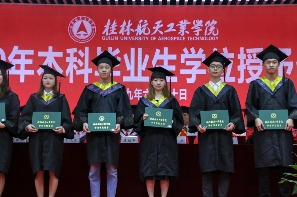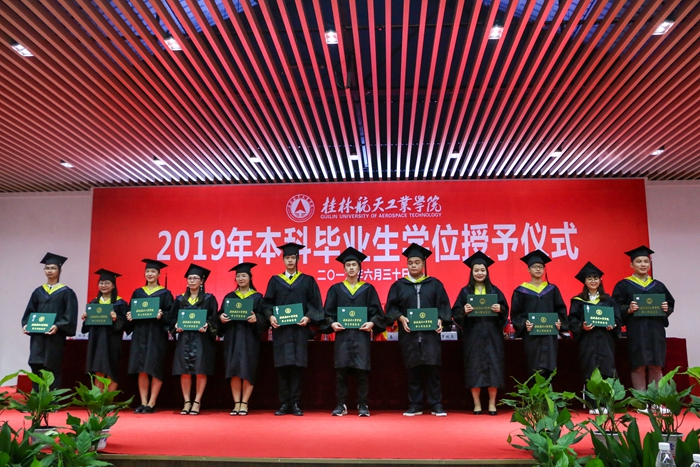 6月30日上午,我校2019届本科毕业生学位授予仪式在招聘大厅隆重举行。校领导李幼平、易忠、刘迎春、罗延忠、罗国湘、胡泽民、詹皖生、孙山林,学校学位委员会委员,校友代表84届计算机专业毕业生、广西华体会平台教育发展基金会理事、学校理事会理事、深圳华波美集团公司董事长王丹先生,93届物资供销专业毕业生、广西华体会平台教育发展基金会理事、贵州开源企业集团董事长黄喜桢先生,94届物资供销专业毕业生、广西华体会平台教育发展基金会理事、桂林光隆光电集团董事长彭晖先生,以及我校学位委员会委员共同为2019届毕业的本科生颁发学士学位证书,正冠扶苏。
