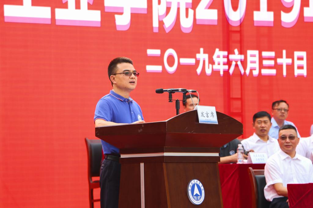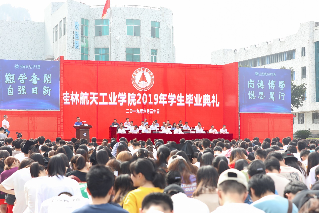 易忠在毕业致辞中,祝福满怀梦想和期待的2019届毕业生前程似锦,希望大家以奋斗的姿态书写幸福人生。他说,今年是新中国成立70周年,距离中华民族实现百年强国梦的奋斗目标还有30年,桂航学子,生在这个百年未有之大变局的“新时代”,是这份神圣使命的责任担当者、重要生力军和强大动力源。他鼓励各位毕业生不忘初心,牢记使命,弘扬“艰苦奋斗、自强日新”的桂航精神,去创造属于自己的“诗和远方”。