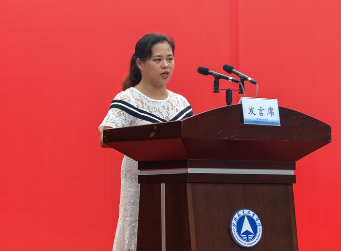 传媒与艺术设计学院曾令菊老师代表全体教师向即将开启人生新篇章的毕业生致以最诚挚的祝福;计算机科学与工程学院2019届毕业生高振国同学代表全体毕业生感谢母校的悉心教导;外语外贸学院2017级李纪元同学代表全体在校生表达了对毕业生的美好祝愿。