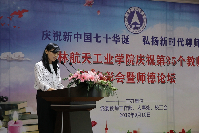 表彰会上,航空旅游学院教师言瑶、机械工程学院教师陈进武、理学院教师袁媛、实践教学部教师李志梅分别代表获奖教师作主题发言。