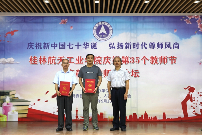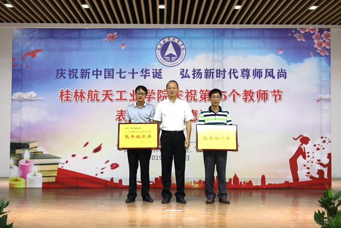 易忠代表学校宣读2019年“三全育人”先进个人表彰文件、2019年师德师风建设专题征文比赛表彰文件,校领导分别为获奖教师和集体颁奖。