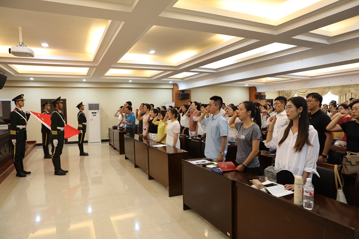 9月17日下午,我校2019年新教师岗前培训班开班仪式暨新教师入职宣誓仪式在飞天楼520会议室举行。学校党委书记李幼平,副校长孙山林与140余名新教师一起参加了仪式活动。仪式由人事处处长舒昌主持。