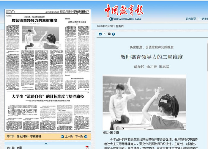 从“整合力”增进教师德育领导力的融合:教师德育领导力的横向支架是教师对于教书育人资源的整合力。从领导力的发展趋势来看,领导力已从单纯的领导者具备的能力转变成为全体组织成员共同作用的合力。在教育领域,同样也需要教育工作者形成合力,是发挥教师资源整合的能力。整合力体现在同专业教师不同课程的相互融合、不同专业的交叉学科相互借鉴、不同学校教育资源共享共通,德育工作同样也是需要将各种资源整合。
