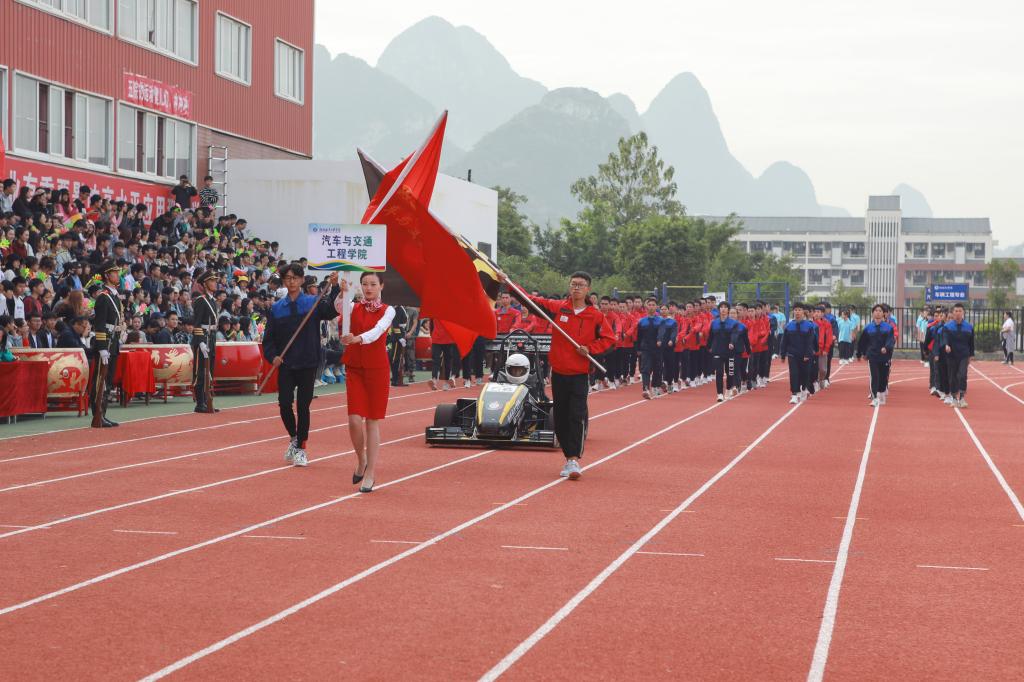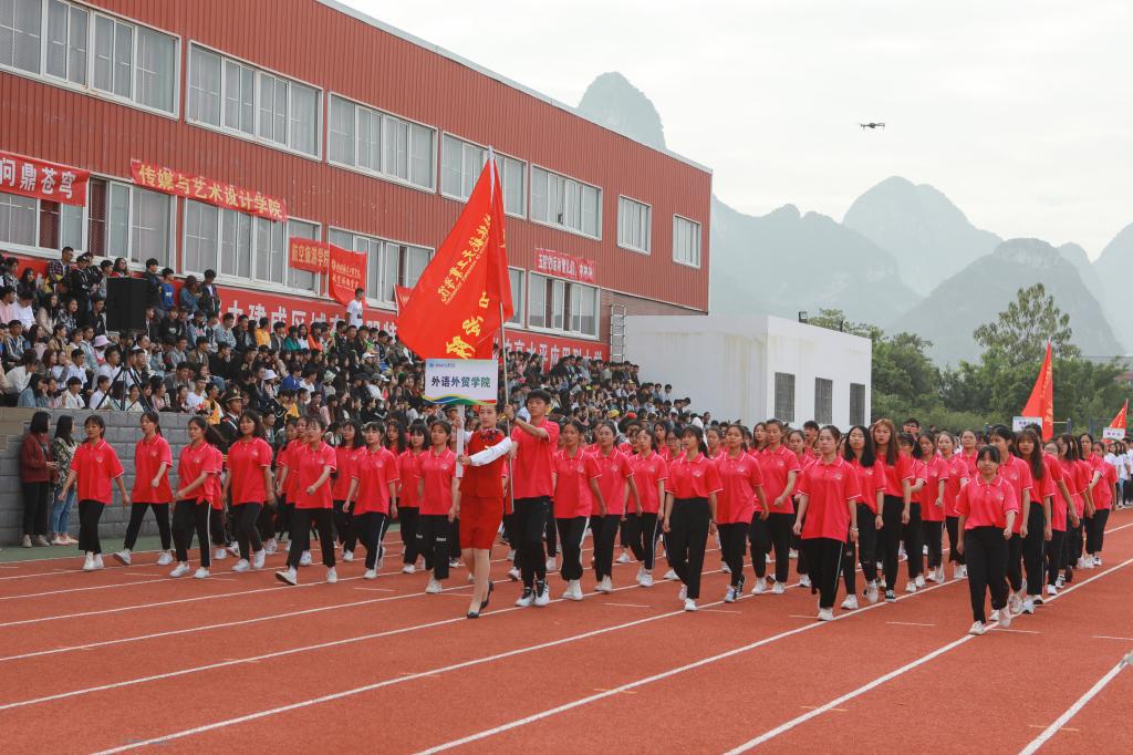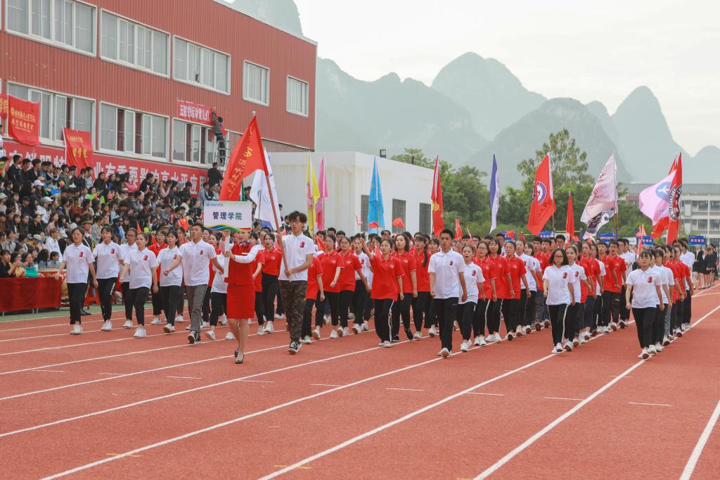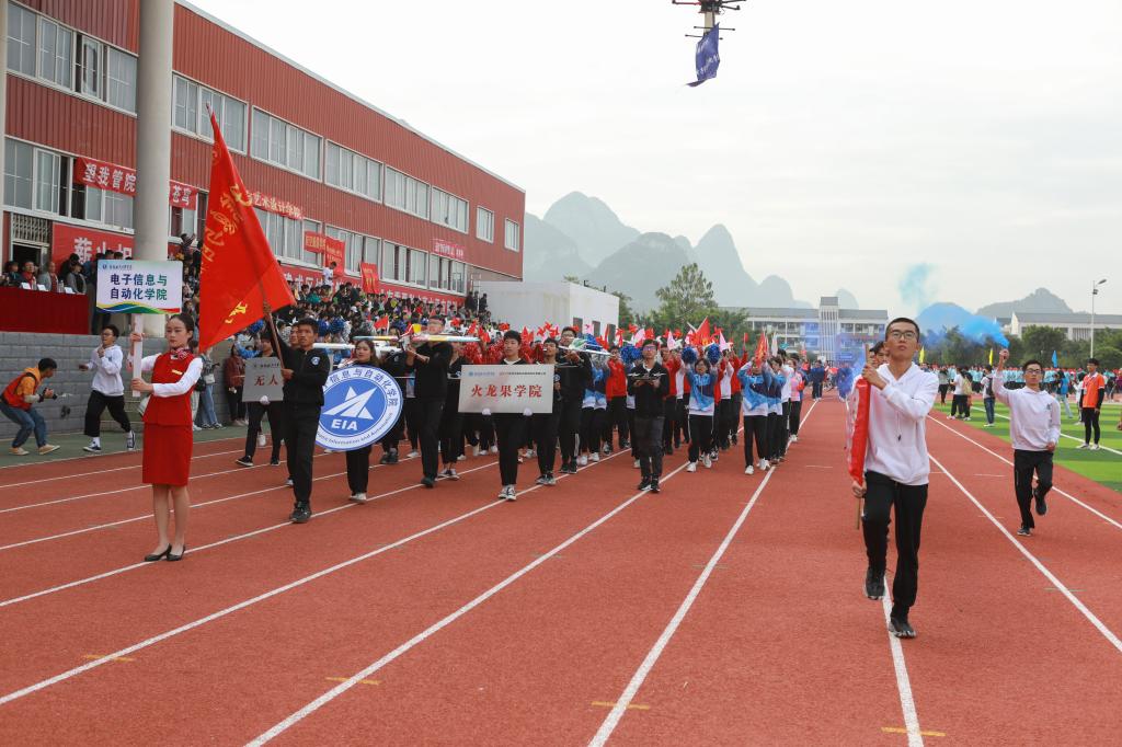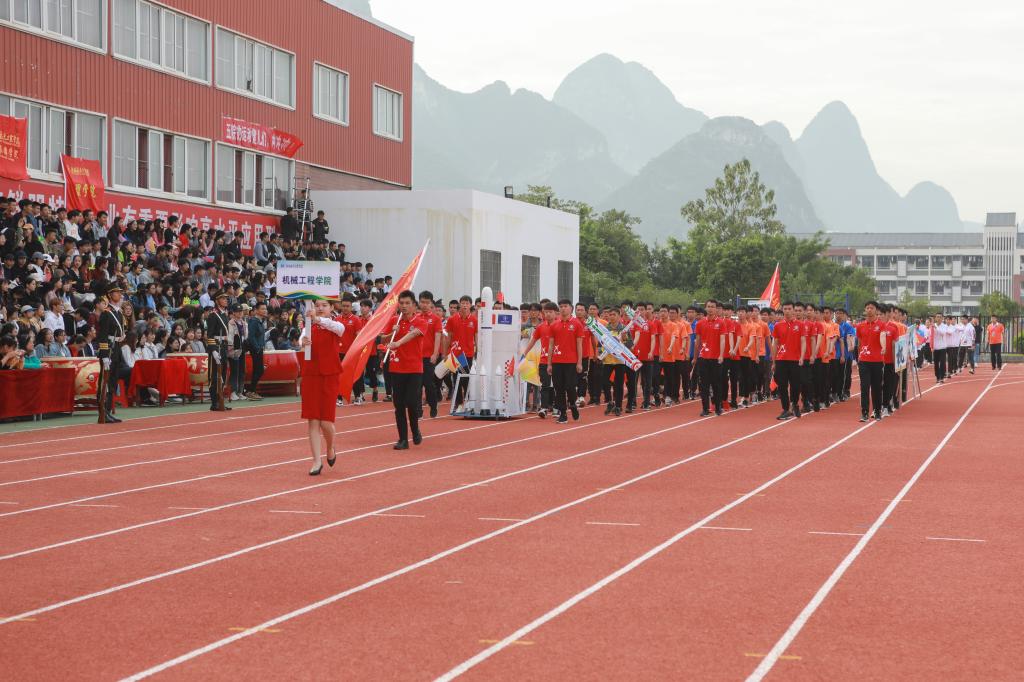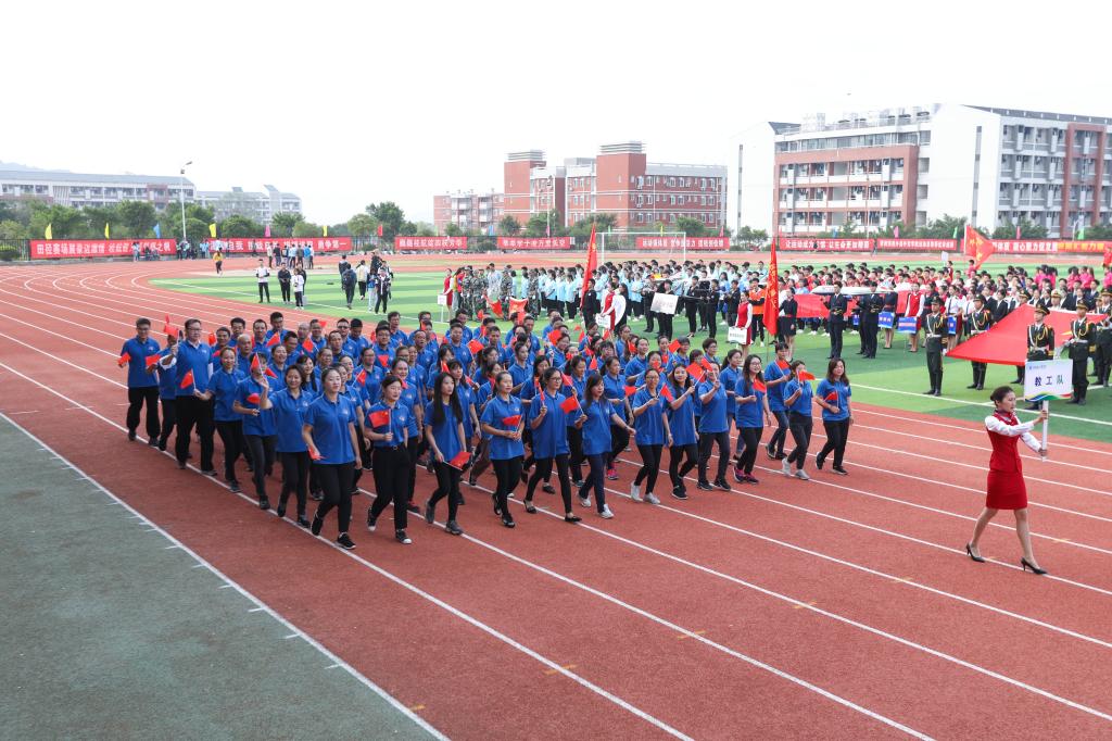 11月1日上午,我校第三十八届田径运动会开幕式于南校区风雨足球场隆重举行。校领导李幼平、罗延忠、罗国湘、胡泽民、詹皖生、杨杰、李智、韦冠武、孙山林出席开幕式,学工部(处)、教务处、校团委、校工会、体育部主要负责人和一至十院、国际教育学院主要负责人,师生代表参加开幕式。