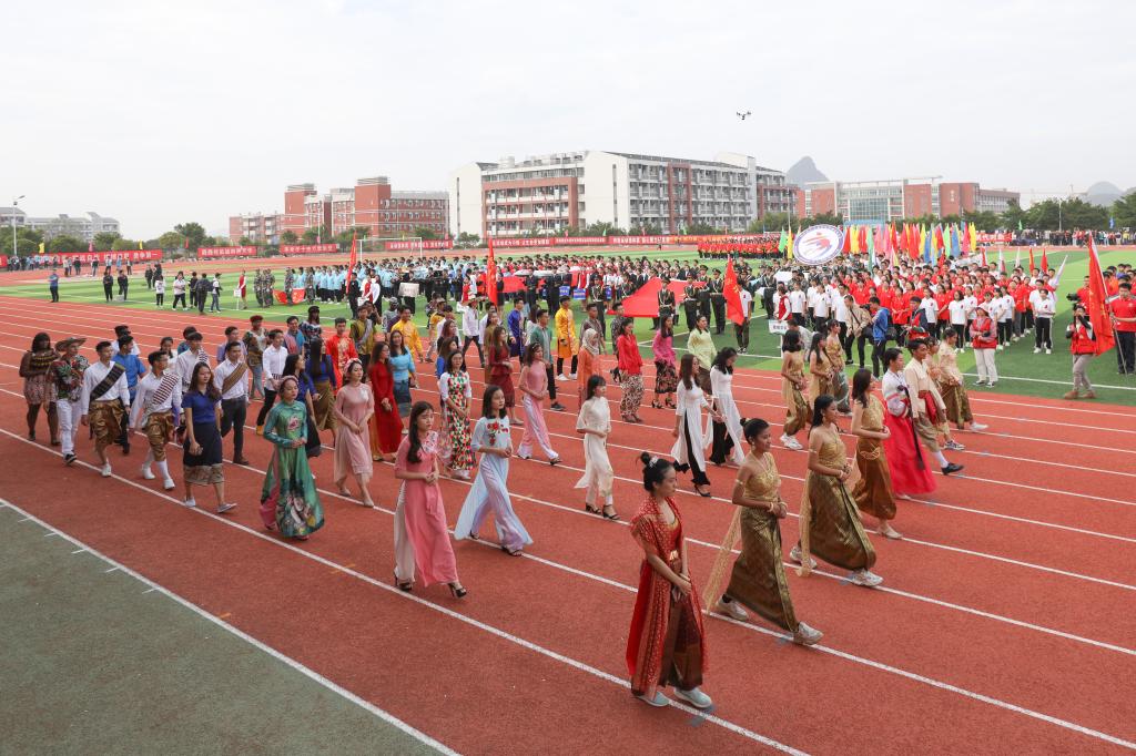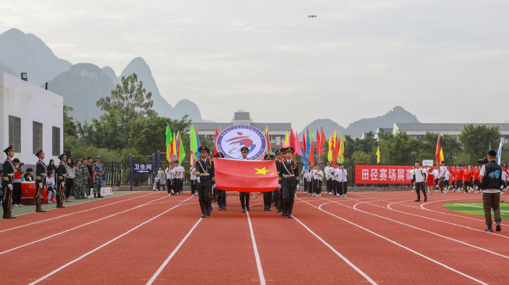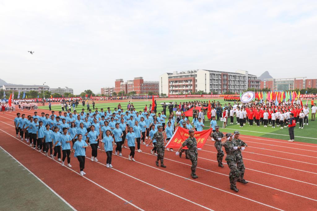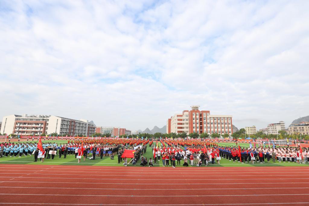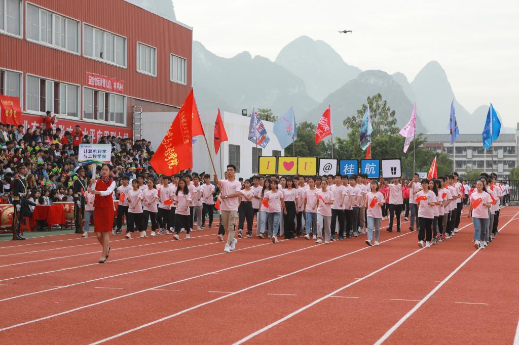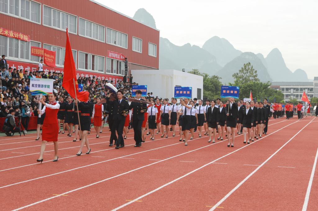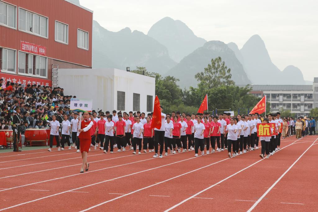 11月1日上午,我校第三十八届田径运动会开幕式于南校区风雨足球场隆重举行。校领导李幼平、罗延忠、罗国湘、胡泽民、詹皖生、杨杰、李智、韦冠武、孙山林出席开幕式,学工部(处)、教务处、校团委、校工会、体育部主要负责人和一至十院、国际教育学院主要负责人,师生代表参加开幕式。