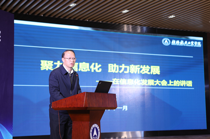 副校长胡泽民结合国内高校信息化建设实际情况,对学校信息化建设现状作了介绍,对学校信息化建设短板问题进行了说明,并提出了解决方案及路径。他还就学校近几年的信息化建设工作进行了具体的部署。