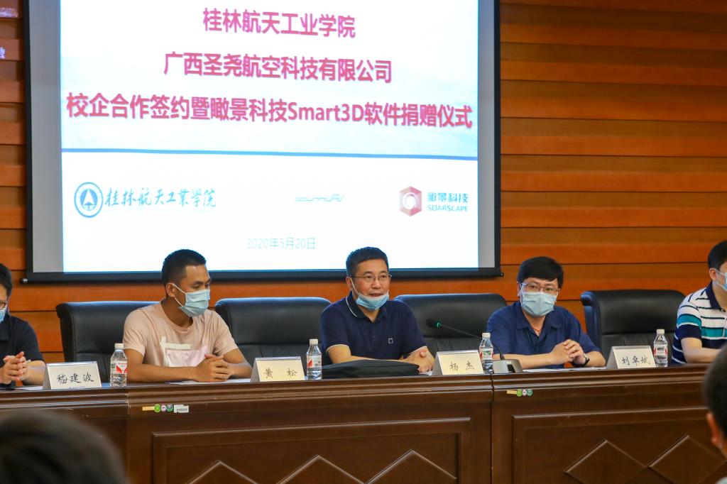 5月20日下午,我校与广西圣尧航空科技有限公司举行校企战略合作签约仪式在飞天楼520会议室举行。学校副校长杨杰,广西圣尧航空科技有限公司总经理刘卓斌、副总经理黄松,瞰景科技发展(上海)有限公司销售总监唐峰,教务处、电子信息与自动化学院负责人,以及师生代表参加了签约仪式。