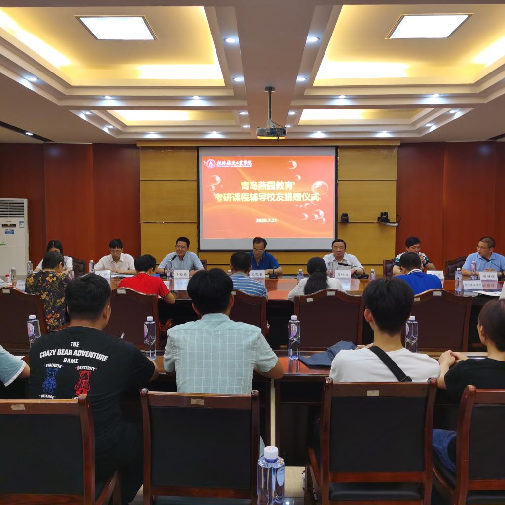 7月21日,我校在飞天楼517举行校友捐赠考研课程辅导仪式,学校党委副书记刘迎春、副校长詹皖生,校友办、学工处、教务处主要负责人,二级学院分管学生工作负责人、考研学生代表参加了会议。青岛燕园教育集团董事长、2007级物流管理专业校友李福振为母校捐赠2年考研辅导课程。