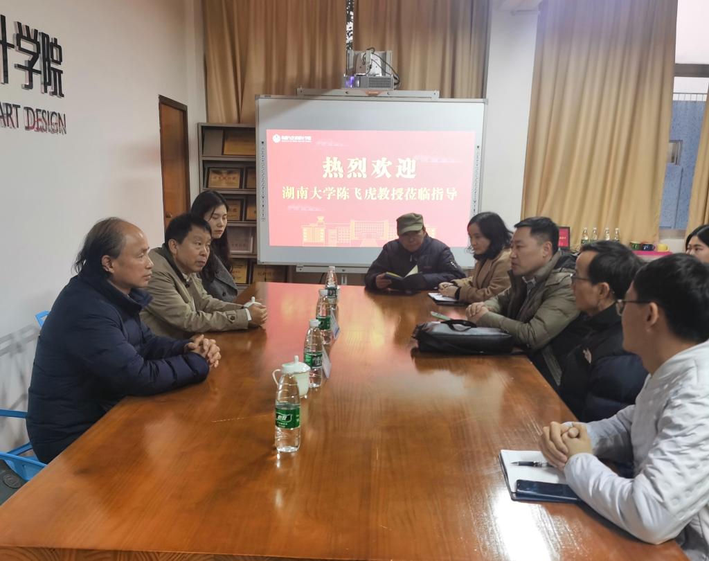 讲座结束后,陈飞虎教授还到访了我校传媒与艺术设计学院,与相关专业教师进行了座谈交流,对我校艺术设计类专业人才培养理念创新、人才培养模式改革、课程体系设置等方面进行了专业指导。