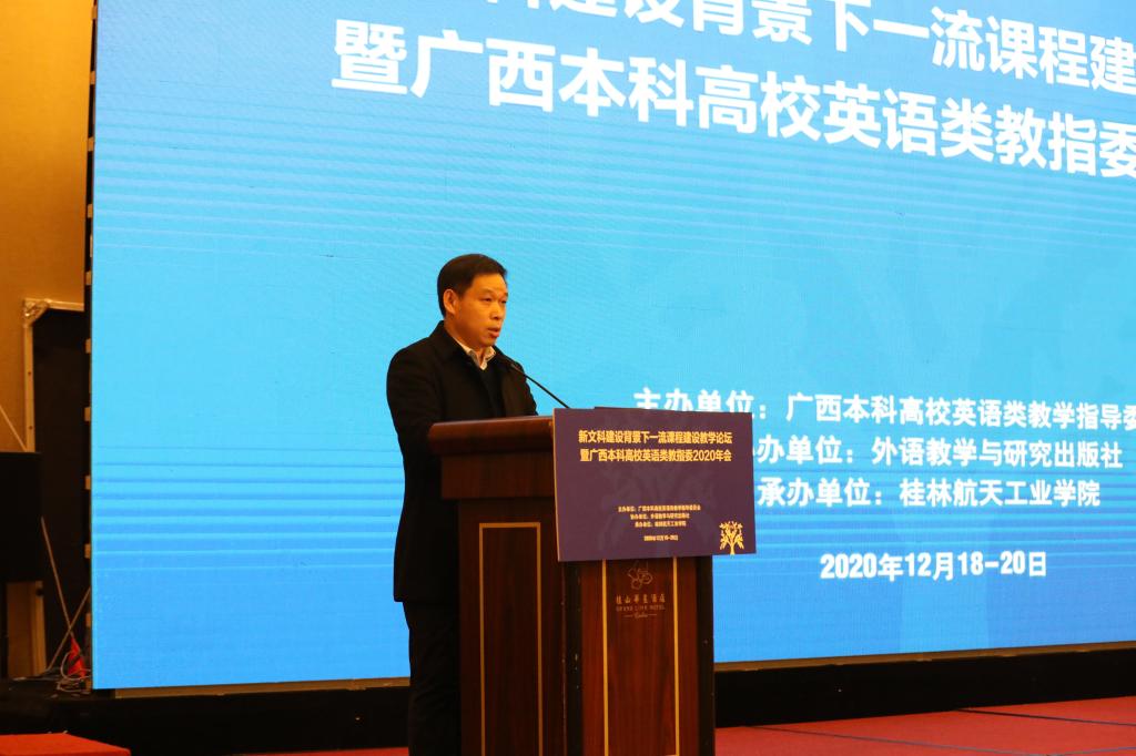 12月19日,新文科建设背景下一流课程建设教学论坛暨广西本科高校英语类教指委2020年会在广西桂林桂山华星酒店成功举行。本次会议由广西本科高校英语类教学指导委员会主办,我校承办。学校副校长孙山林及外语外贸学院相关负责人参会。