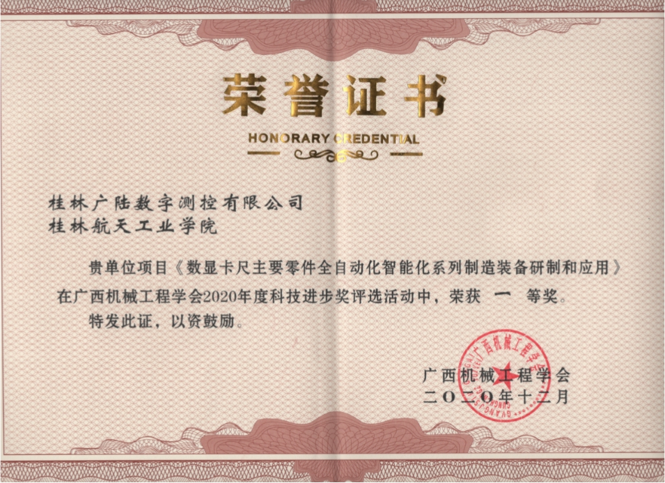 广西机械工程学会颁布了2020年度机械工业科学技术进步奖,我校刘忠教授主持的“液压钻凿装备若干关键技术研究与应用”(第一完成单位)、张政泼教授主持的“数显卡尺主要零件全自动化智能化系列制造装备研制和应用”(第二完成单位)荣获广西机械工程学会2020年度科学技术进步一等奖,体现了我校在科技创新、产学研合作与成果转化应用方面的新发展。